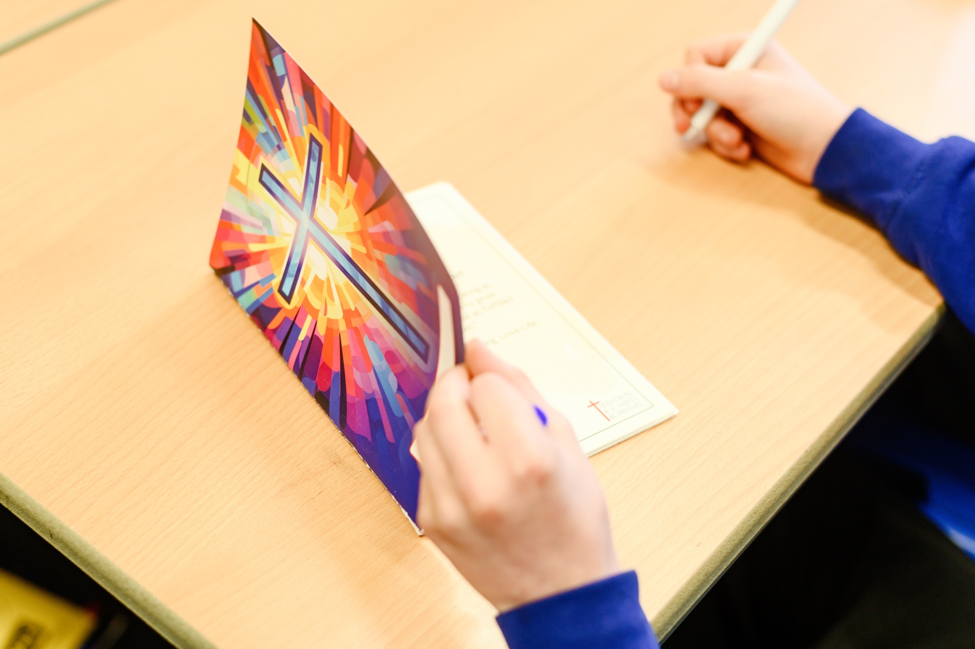 In KS1, each child has their own individual prayer journal which includes our school prayers, Mission Statement and other key reflections. Throughout their time in KS2, the children use their journals to record personal prayers, class prayers, reflections and prayers for special intentions, creating a meaningful record of their spiritual journey. These books are extremely special, and when the children leave Year 6, they take them home as a lasting keepsake to remember their time at primary school and the important way faith has shaped their journey here.